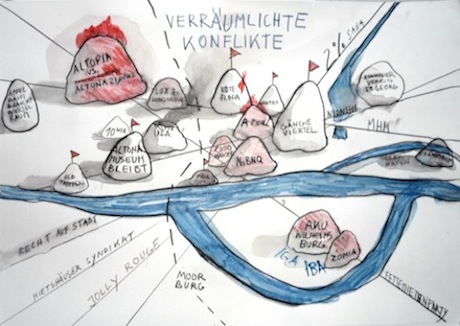"Right to the City", founded in 2009, is a network of initiatives in Hamburg, that stand for affordable housing, non-commercial spaces, socialisation of property, a new democratic urban planning and the preservation of public greens; for the right to the city for all inhabitants – with or without papers. Against gentrification, repression, neoliberal urbanism and closed borders.