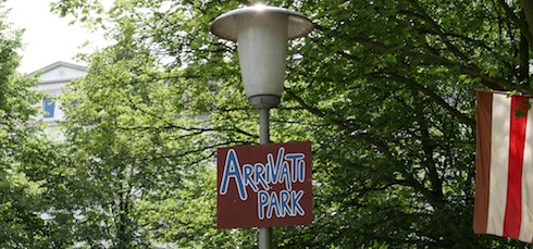 Der Arrivati Park hat sich gestern als öffentlicher Ort etabliert, an dem sich viele in den Open Air Galerien in der Superbude von Never Mind The Papers über Flucht, Migration und solidarische Städte informieren. Das Konzert am Abend sahen rund 1000 Menschen, als Park und Hardcornern eins wurden. Sie ließen sich auch nicht von der Hamburger Polizei provozieren, die ab etwa 21:30 Uhr begann, mit Hundertschaften und Wasserwerfern von der Budapester Straße aus ohne ersichtlichen Grund den Park zu belagern. Die Belagerung quittierten die Park-Besucher mit einer klaren Aussage, indem sie wiederholt riefen: "Das ist unsere Stadt!"